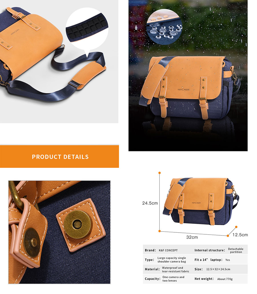K&F Concept KF13.062V1 je designově zpracovaná foto brašna přes rameno.