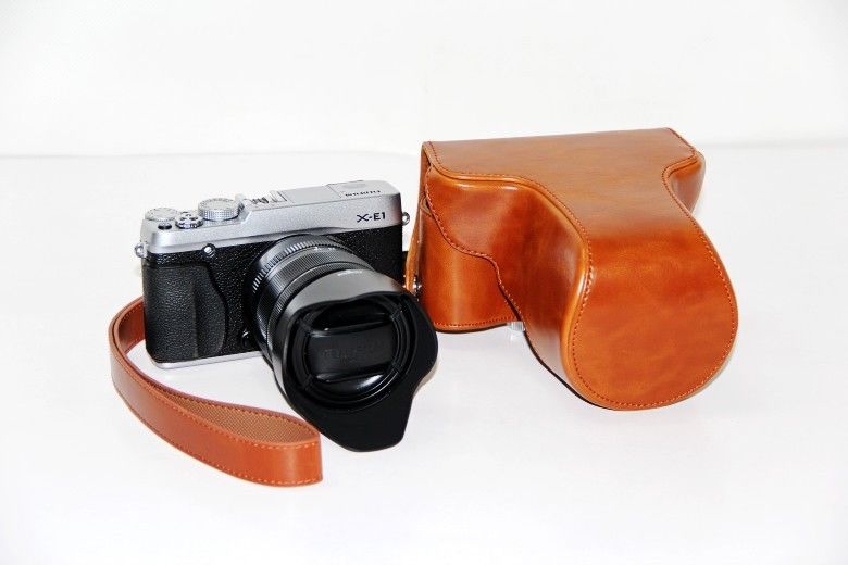 Stylové kožené pouzdro pro fotoaparát FUJIFILM X-E2. Balení obsahuje i popruh pro zavěšení na krk nebo přes rameno.
