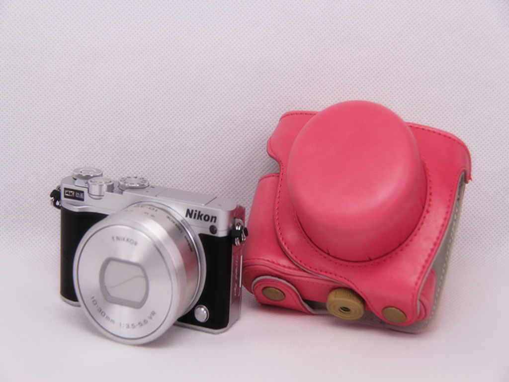 Stylové kožené pouzdro pro fotoaparát NIKON J5. Balení obsahuje i popruh pro zavěšení na krk nebo přes rameno.