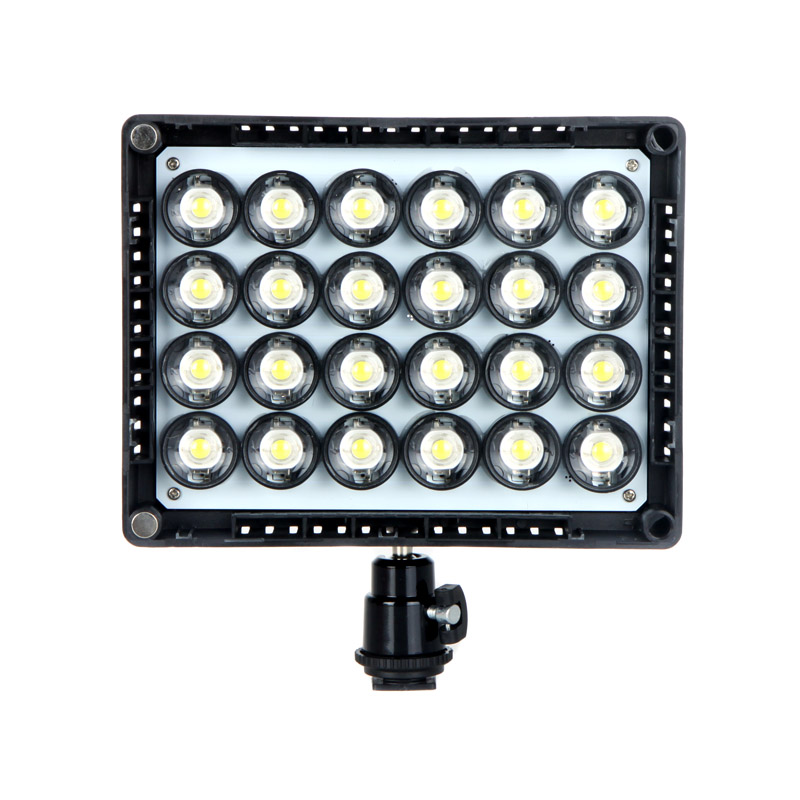 Přídavné světlo pro fotoaparáty a video kamery s 24 vysoce svítivými LED diodami.