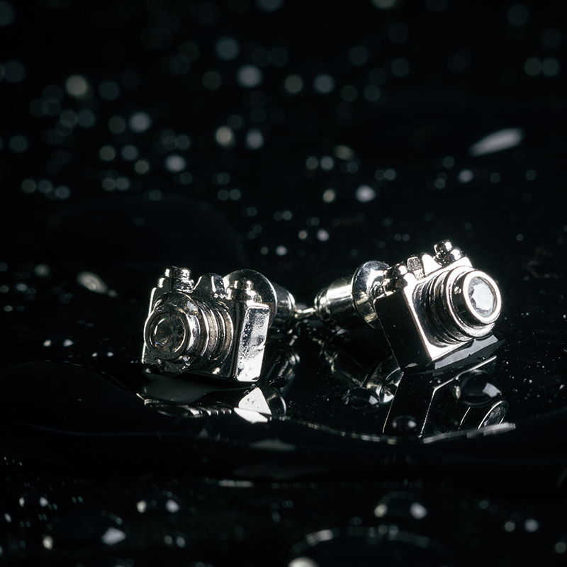 - Malé náušnice - fotoaparát pecky s kamínkem