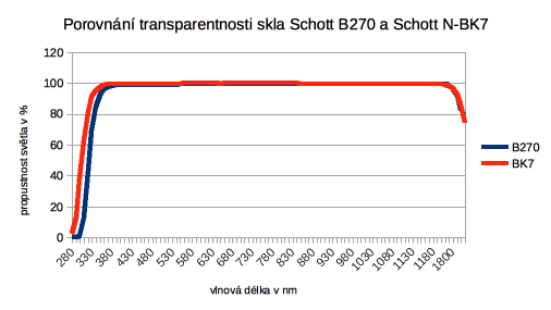 Porovnání optických vlastností skla Schott B 270 a Schott BK7