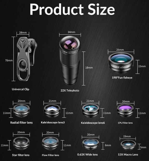- APEXEL kreativní sada objektivů s teleobjektivem pro mobilní telefony
