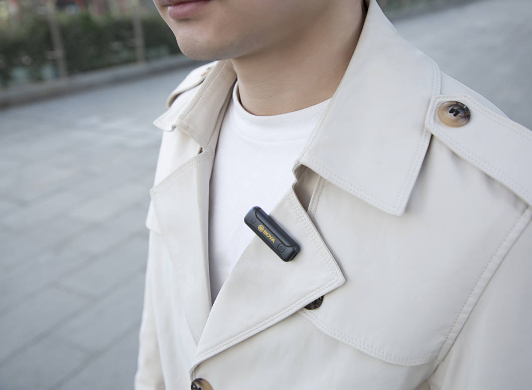 Mikrofon BY-WM3T je zabudován v malém vysílači, s klipem na zadní straně, umožňuje vám tedy volně jej připnout na jakékoli oblečení a okamžitě začít nahrávat.