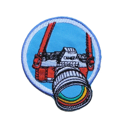 Nášivka ve tvaru fotoaparátu.