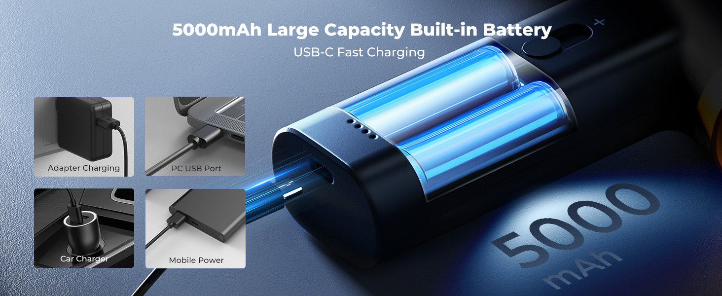 Dlouhá výdrž a 3 rychlosti: Přizpůsobte si výkon přesně podle potřeby stisknutím tlačítka. Vysokokapacitní baterie udrží ofukovač v chodu až neuvěřitelných 180 minut (na nejnižší rychlost) a podporuje rychlé 10W dobíjení přes USB-C.