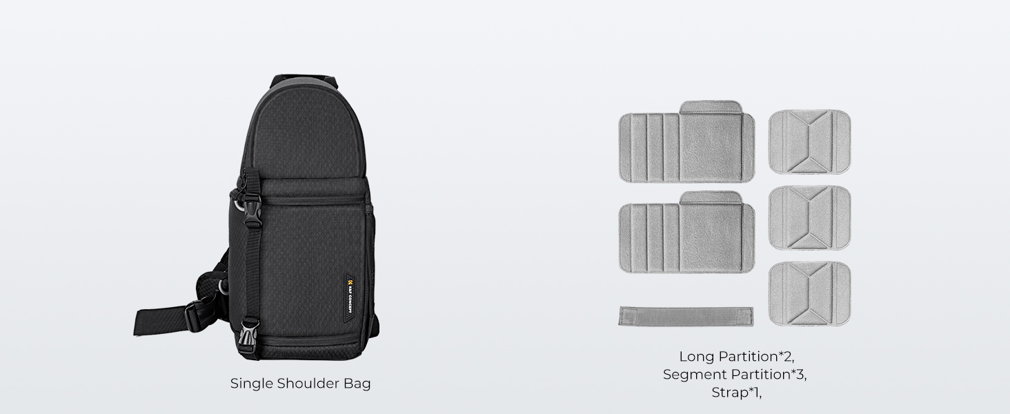 Tento malý batoh s jedním popruhem může být společníkem na Vašich cestách společně s fotoaparátem a 3 objektivy k tomu. Díky kompaktním rozměrům a malé hmotnosti je to jeden z nejmenších fotobatohů schopných pojmout takovouto výbavu.