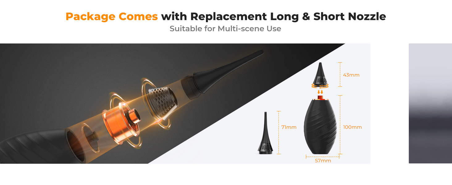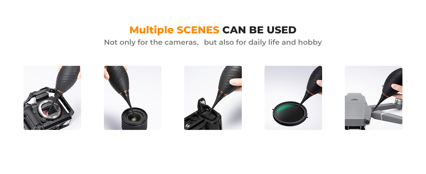 - Vhodný k odfouknutí nečistoty z objektivu, zrcátka, snímače nebo z každé skulinky nejen u fotoaparátu, ale i jiné elektroniky, nebo třeba i hudebních nástrojů.