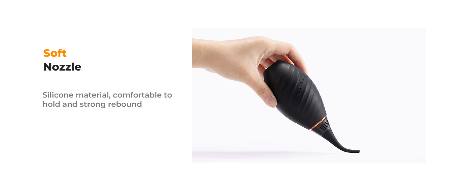 - Silikonový materiál: Balónek je vyroben ze silikonového materiálu, který je příjemný na dotek, má silný odraz a měkká ofukovací tryska poskytuje lepší ochranu zařízení a zabraňuje sekundárnímu poškození zařízení.