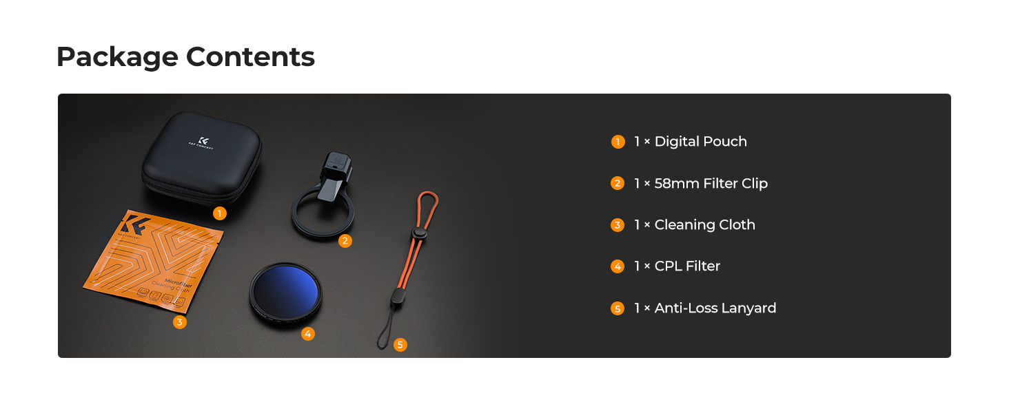 - K&F Concept Polarizační CPL filtr 58mm s klipem pro mobilní telefony včetně odolného pouzdra