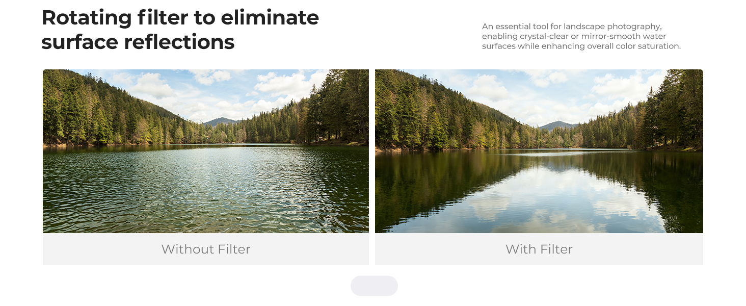 Prémiový CPL filtr 58 mm: Nezbytný doplněk pro fotografování krajiny a architektury. Účinně odfiltrovává polarizované světlo z nekovových povrchů (sklo, voda, lesklé listy), čímž eliminuje odlesky, prohlubuje modrou barvu oblohy a zvyšuje celkovou sytost barev.