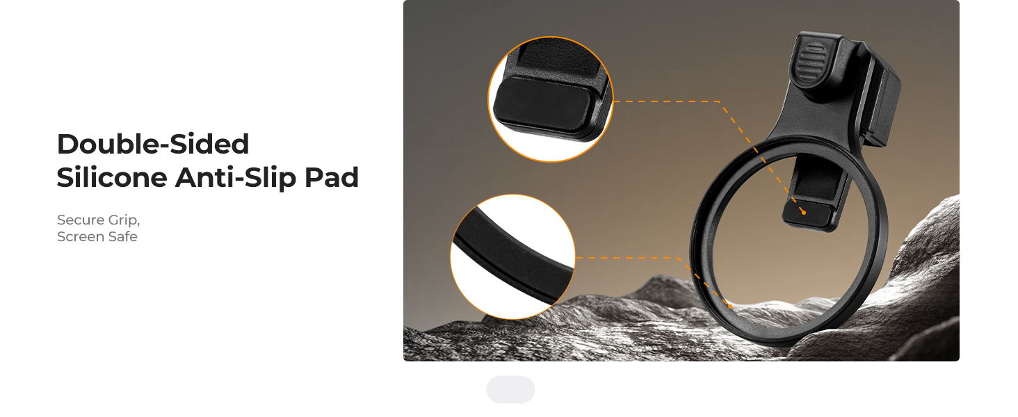Ultralehký a protiskluzový design: Extrémně lehká konstrukce držáku nijak nezatíží váš telefon. Zadní strana je navíc vybavena celoobvodovou silikonovou podložkou, která zajišťuje pevný úchop na telefonu i krytu a zabraňuje nechtěnému sklouznutí.