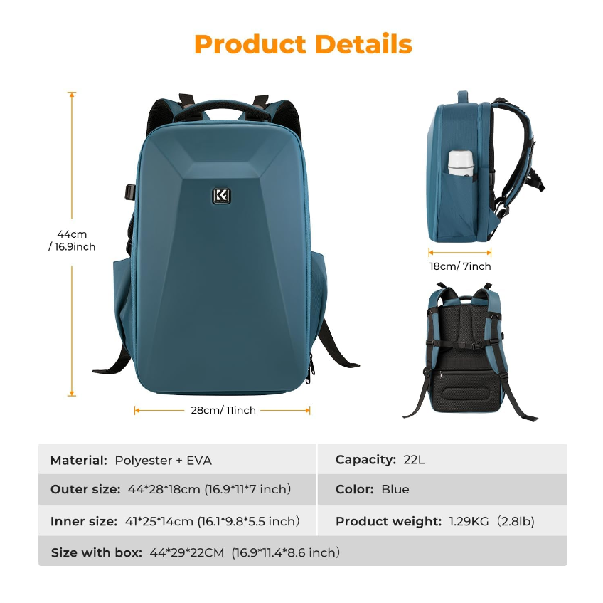 K&F Concept prostorný foto batoh 22L Nature Wander 10, modrá je voděodolný fotobatoh na objektivy, fotoaparáty i dron KF13.134V2.