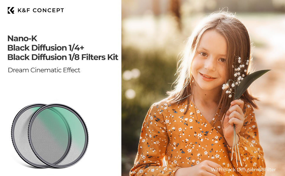 - Vytváří filmový efekt: Černý difúzní mlhový filtr K&F Concept dokáže změkčit světlé záblesky, snížit kontrast a vytvořit filmový efekt pro video a fotografii.