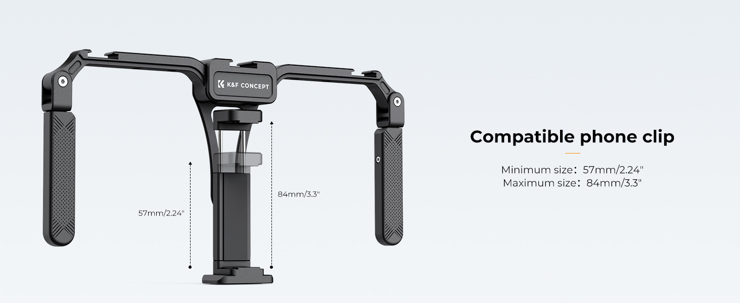 Podporuje telefony o šířce až 84 mm, například iPhone 15/14/13 Pro Max, Samsung, Huawei a další. Díky tomu můžete snadno využívat svůj telefon pro video natáčení.