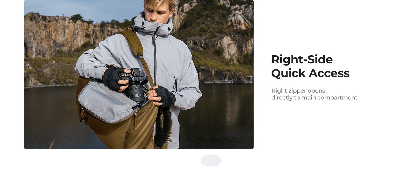 Rychlý boční přístup: Abyste nezmeškali ten správný moment, je batoh vybaven bleskovým bočním otevíráním. Kameru tak máte v ruce během vteřiny, aniž byste museli sundávat batoh na zem.