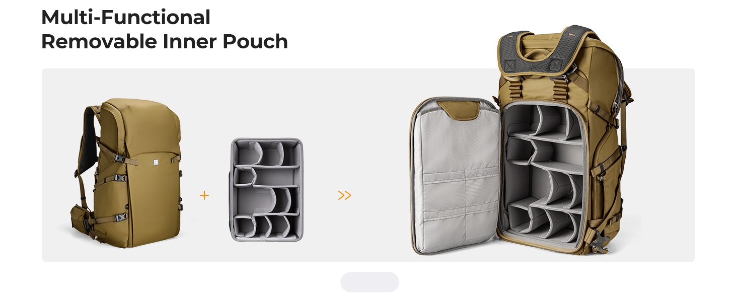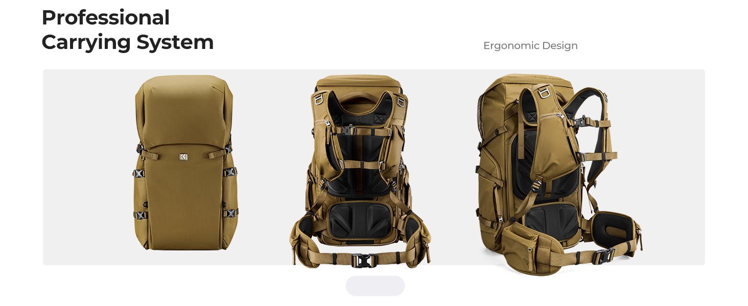 K&F Concept Star Wander 05 Champagne profesionální fotobatoh 40L je prostorný voděodolný batoh pro 2 fotoaparáty a 6 objektivů KF13.207